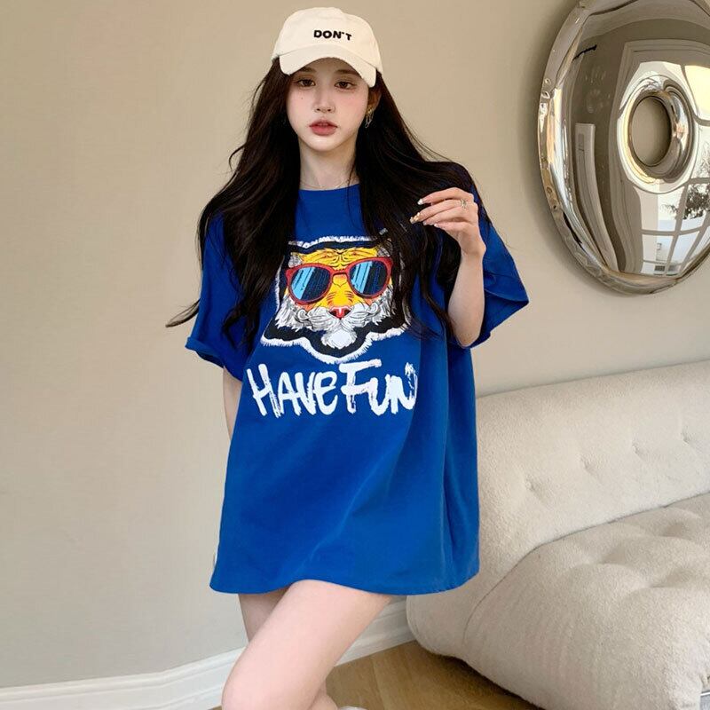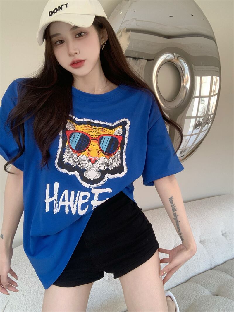 Tiger short-sleeved T-shirt women's summer 2022 new design sense niche chic Hong Kong flavor blue top clothes ins tide ブルー サマー 夏物 Tシャツ s576124561773900