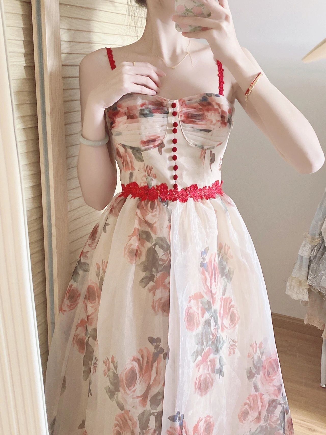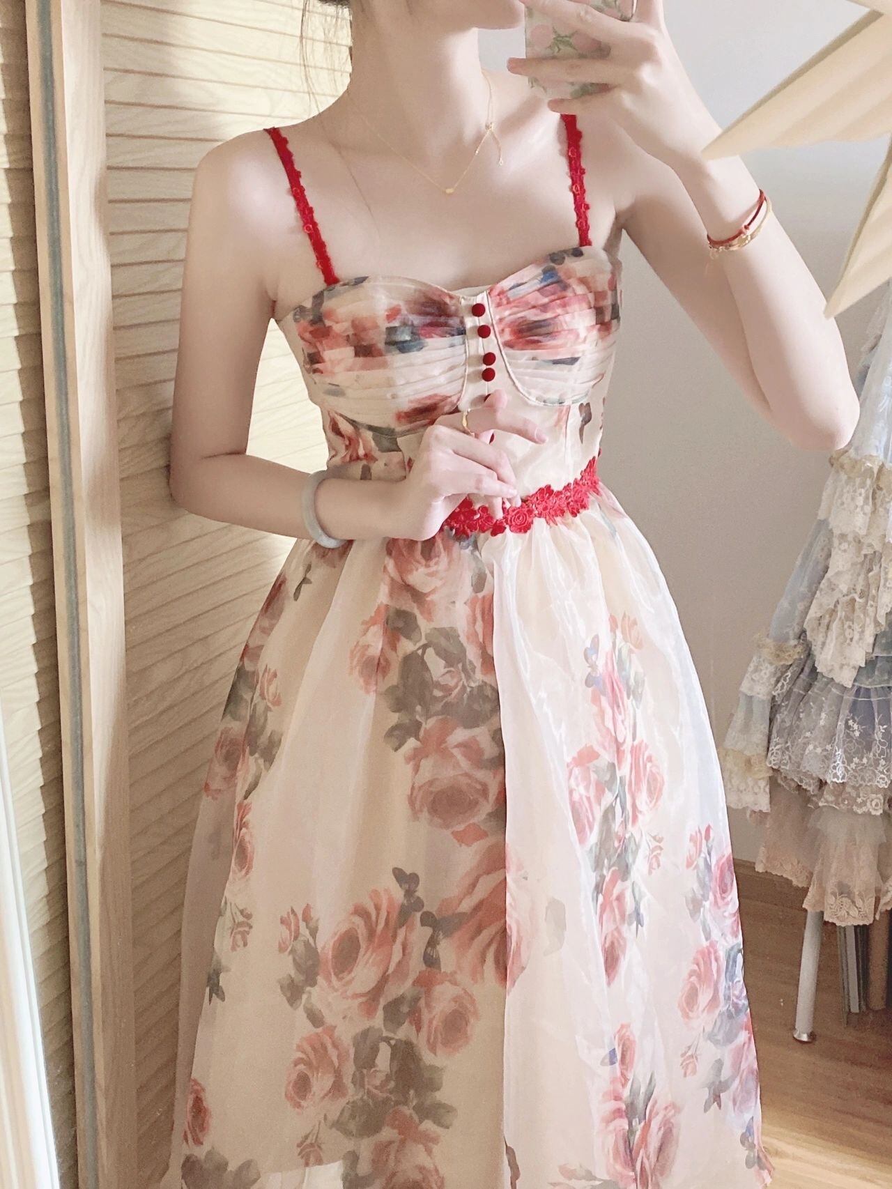 Floral suspender dress female design sense niche summer French court chic high-end beautiful super fairy long skirt ロング サマー 夏物 花柄 スカート s576157072887862
