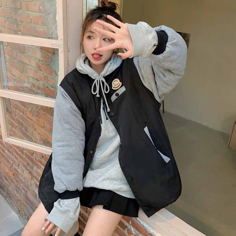 Black baseball unim women's autumn and winter thickened cotton clothes 2022 new design sense small American cotton coat ブラック コットン オータム 秋物 ウィンター 冬物 s576125201567018