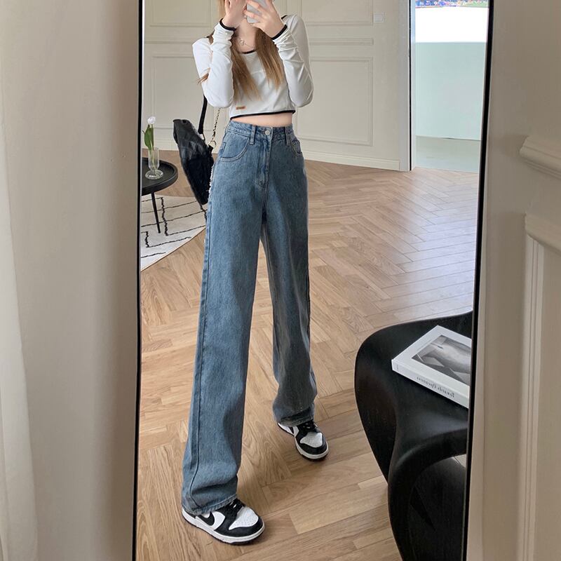 Jeans women's spring loose straight tube 2022 new design sense niche chic Hong Kong flavor high waist wide leg pants tide ハイウェスト スプリング 春物 ワイドレッグ ワイドパンツ s576196046431133