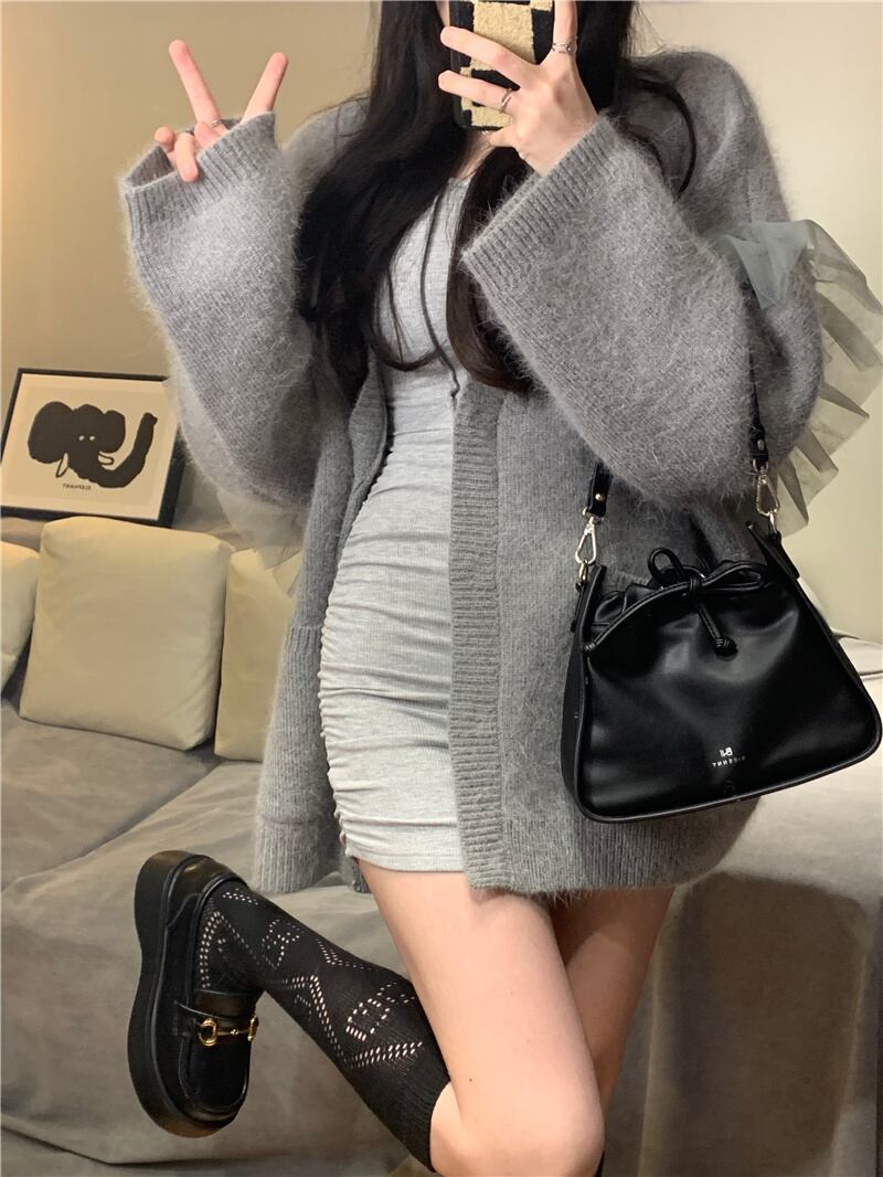 Sweater coat women's clothing design sense niche spring 2022 new retro Hong Kong style lazy style senior knitted cardigan レトロ カーディガン スプリング 春物 s576162726547213