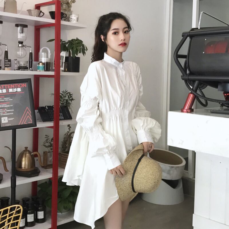 White puff sleeve shirt dress women's spring and autumn 2022 new design irregular fashion short skirt ショート ホワイト スプリング 春物 オータム 秋物 スカート s576119084182829
