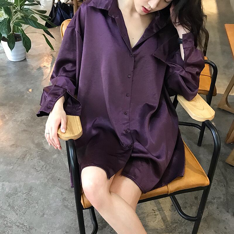 Hong Kong style chic mid-length loose and lazy style long-sleeved shirt women's spring and autumn 2022 new style coat ロング スプリング 春物 オータム 秋物 s576192179298398
