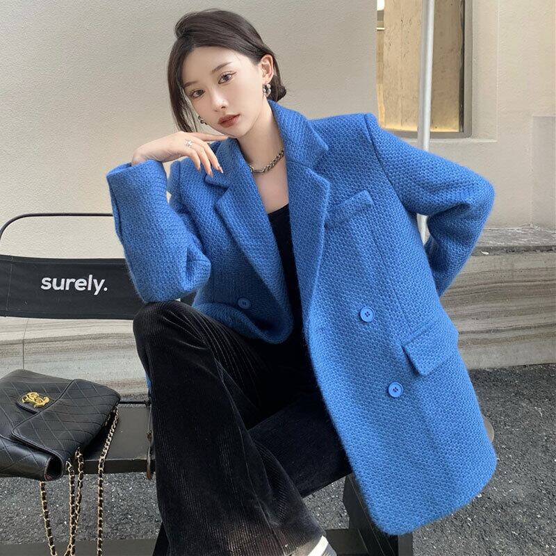 Blue woolen suit jacket women's autumn and winter 2022 new explosion style small high-end fashionable street suit ブルー ストリート オータム 秋物 ウィンター 冬物 s576174675777533