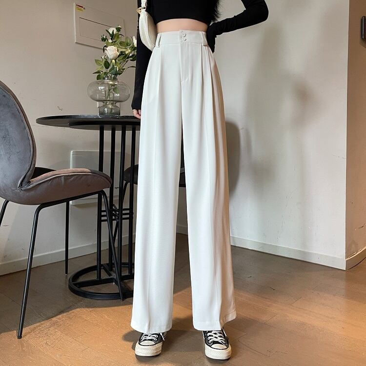 White suit pants women's spring high waist drape 2022 new chic Hong Kong flavor straight tube loose mopping wide leg pants ハイウェスト ホワイト スプリング 春物 ワイドレッグ ワイドパンツ s57614320459612
