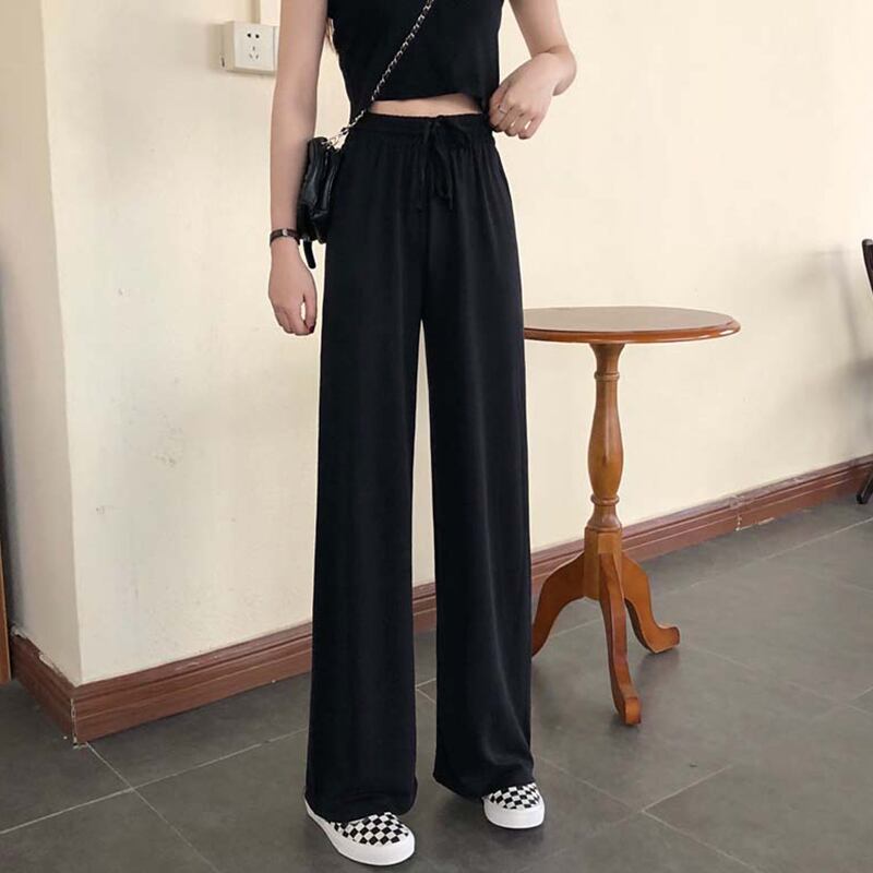 Black drape wide-leg pants women's summer loose straight 2022 new high-waisted slim mopping all-match casual pants ブラック カジュアル サマー 夏物 スリム s576178435519603