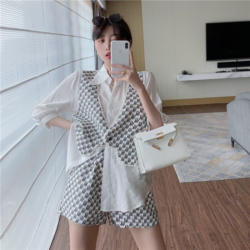 Small man fried street fashion suit women's spring 2022 new shirt shorts high-quality net red popular two-piece suit レッド ストリート スプリング 春物 ショーツ ブルマー s576152895214337