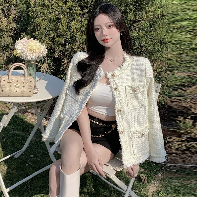 Off-white small fragrant tweed jacket women's autumn and winter 2022 new French ladies high-end eign style bomb street ホワイト ストリート オータム 秋物 ウィンター 冬物 s576159566451505