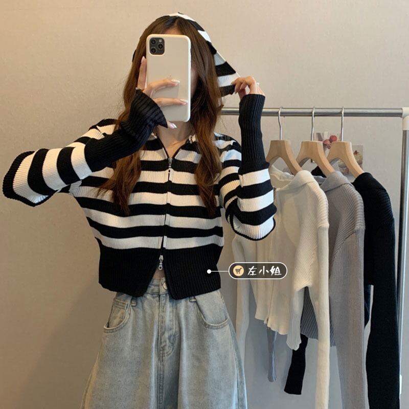 Striped knitted cardigan women's spring and autumn thin sweater coat 2022 new pure desire style short top ショート カーディガン スプリング 春物 オータム 秋物 ストライプ ピュア s576149375511