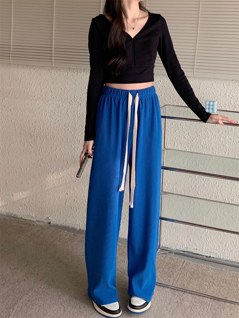 Black wide-leg pants women's high-waisted drooping floor-to-ceiling pants 2022 new spring style small loose straight pants ブラック スプリング 春物 s576175032304732
