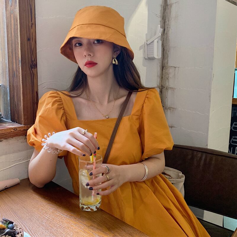 Puff sleeves square neck dress women's summer 2022 new small gentle style temperament high-end beautiful skirt サマー 夏物 スカート スクウェア s576147067074489