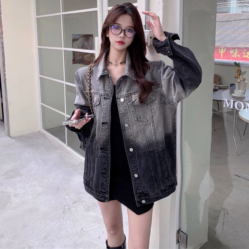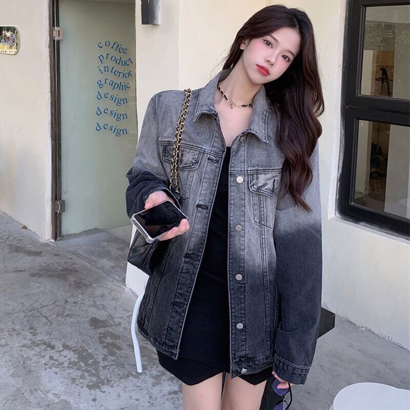 Gradient color denim jacket women's spring design niche 2022 new retro high-end loose bf lazy wind レトロ スプリング 春物 s576122960974991