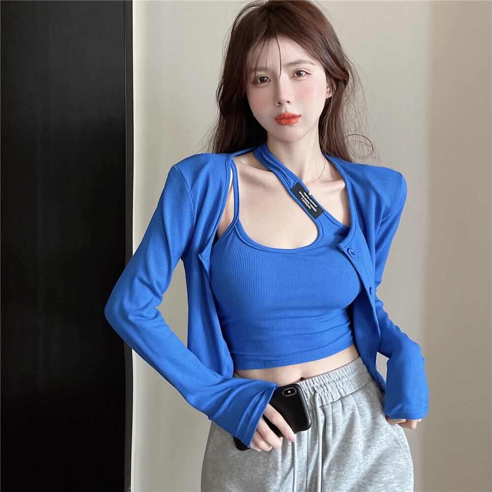 Hot fashion suit female spring 2022 new short cardigan jacket camisole Western style bomb street two-piece set ショート ストリート カーディガン スプリング 春物 s576180048914924