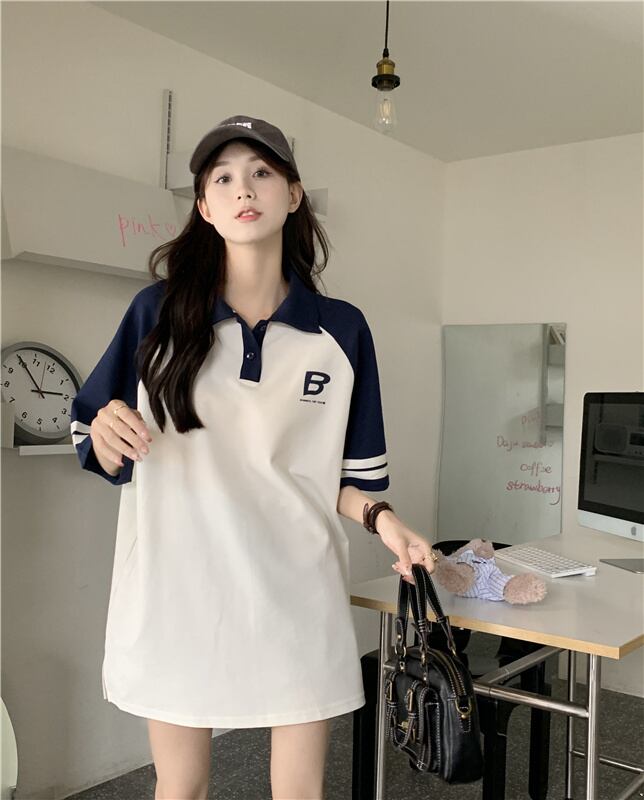 Bottom missing short-sleeved T-shirt women's design sense niche summer loose version oversize mid-length top ins サマー 夏物 Tシャツ s576143203907253