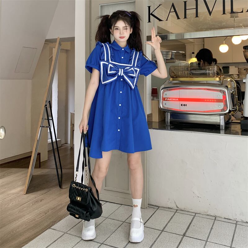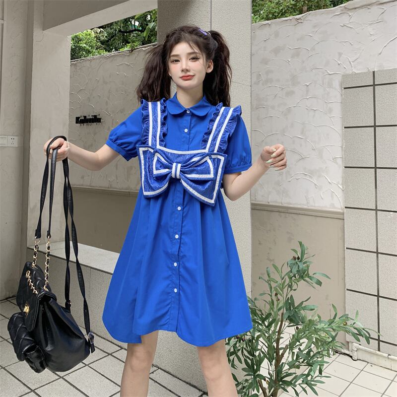 Klein blue shirt dress female design sense niche summer milk sweet student petite skirt two-piece set ブルー 大人ガーリー スウィート キュート カジュアル サマー 夏物 スカート s576194486258224