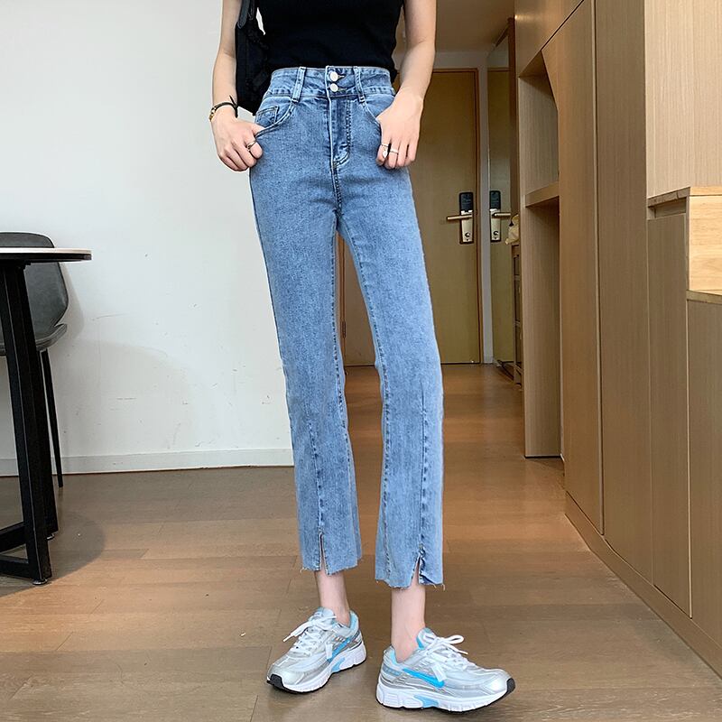 Black split nine-point jeans women's spring small cigarette pants 2022 new high waist all-match straight pants ハイウェスト ブラック スプリング 春物 s576118697989125