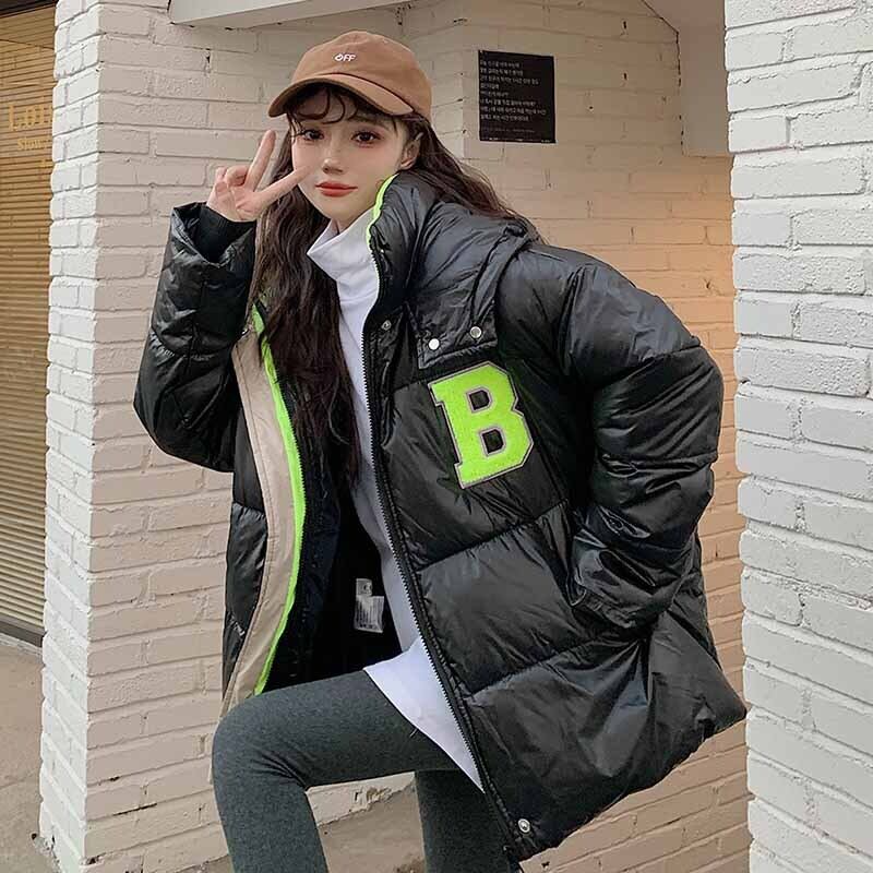 Black hooded padded jacket women's autumn and winter ins Hong Kong style padded jacket 2022 new oversize padded jacket ブラック オータム 秋物 ウィンター 冬物 s576140992120791