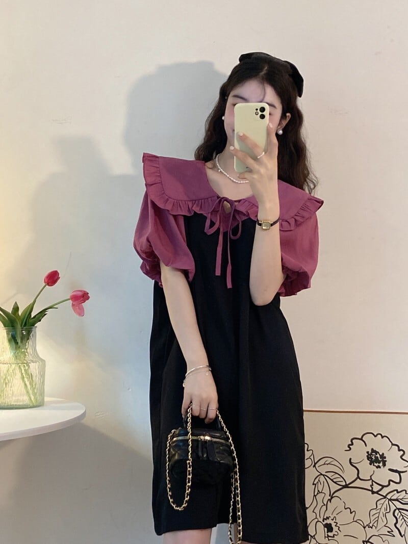 Doll-neck dress women's clothing design sense niche summer milk sweet and gentle first love fake two-piece puff sleeve skirt 大人ガーリー スウィート キュート カジュアル サマー 夏物 スカート s576159017108342