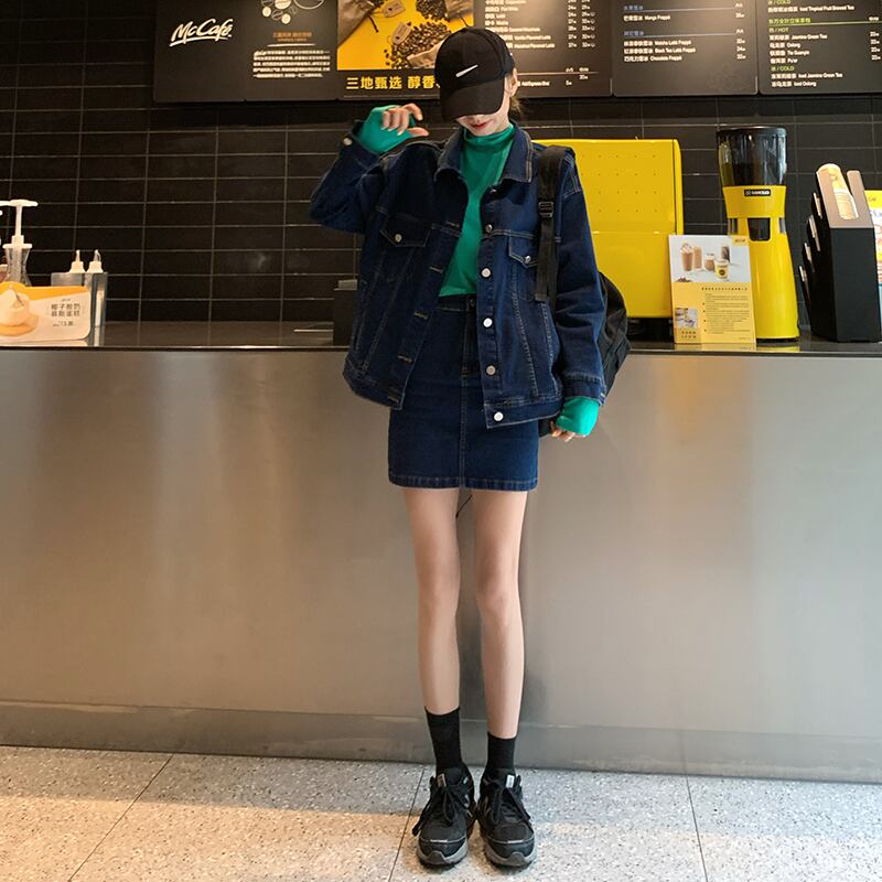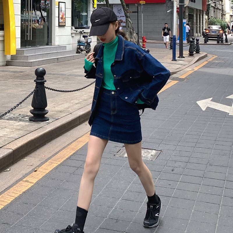 Fried street sweet and cool fashion suit skirt female spring 2022 new denim jacket skirt net red popular two-piece suit レッド ストリート 大人ガーリー スウィート キュート カジュアル スプリング 春物 スカート s576180374109406