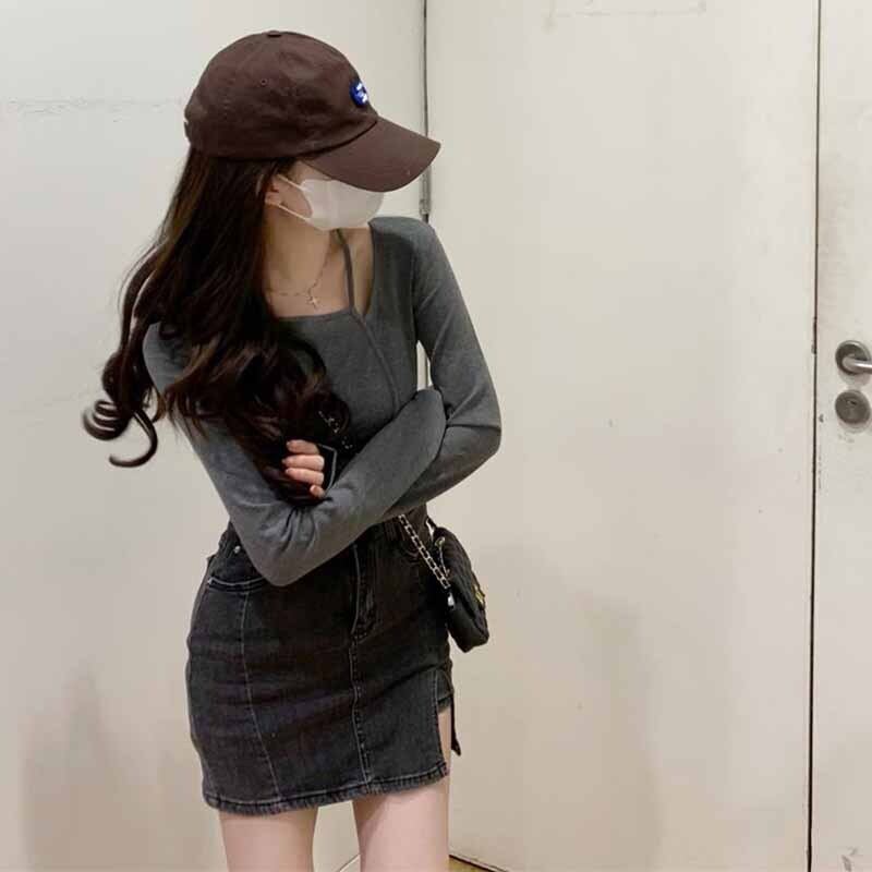 Pure lust short top women's spring and autumn 2022 new design sense black slim-fitting bottoming shirt ショート ブラック スプリング 春物 オータム 秋物 s576174942572904