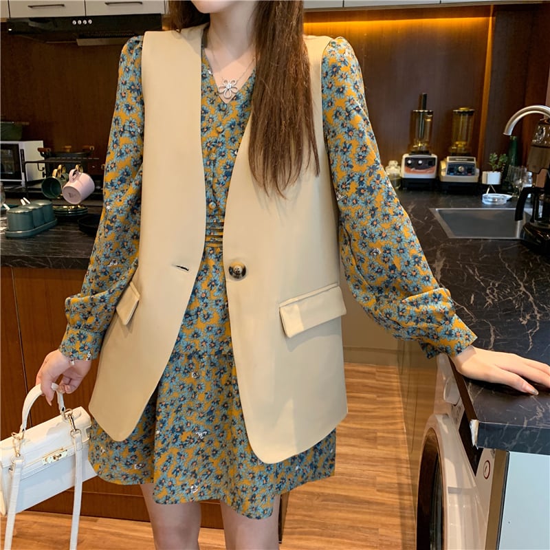 Coffee-colored suit vest women's spring design sense of outside layering wear waistcoat warm vest net red retro vest outer wear レッド レトロ スプリング 春物 s576127576647723