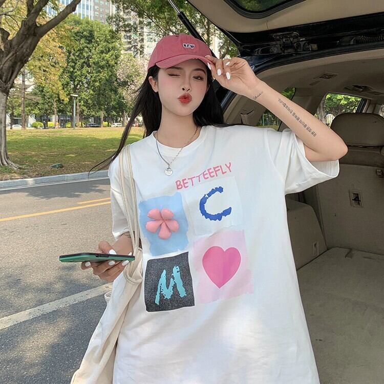 White short-sleeved T-shirt summer 2022 new design sense niche loose style chic half-sleeved top ins tide ホワイト サマー 夏物 Tシャツ s576138517544030