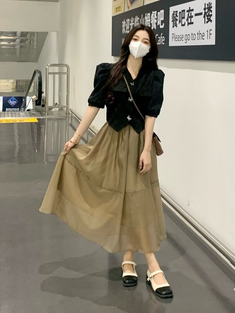 Xiaoxiangfeng short top women's design sense niche summer French chic unique high-end puff-sleeved short-sleeved shirt ショート サマー 夏物 s576124644071175