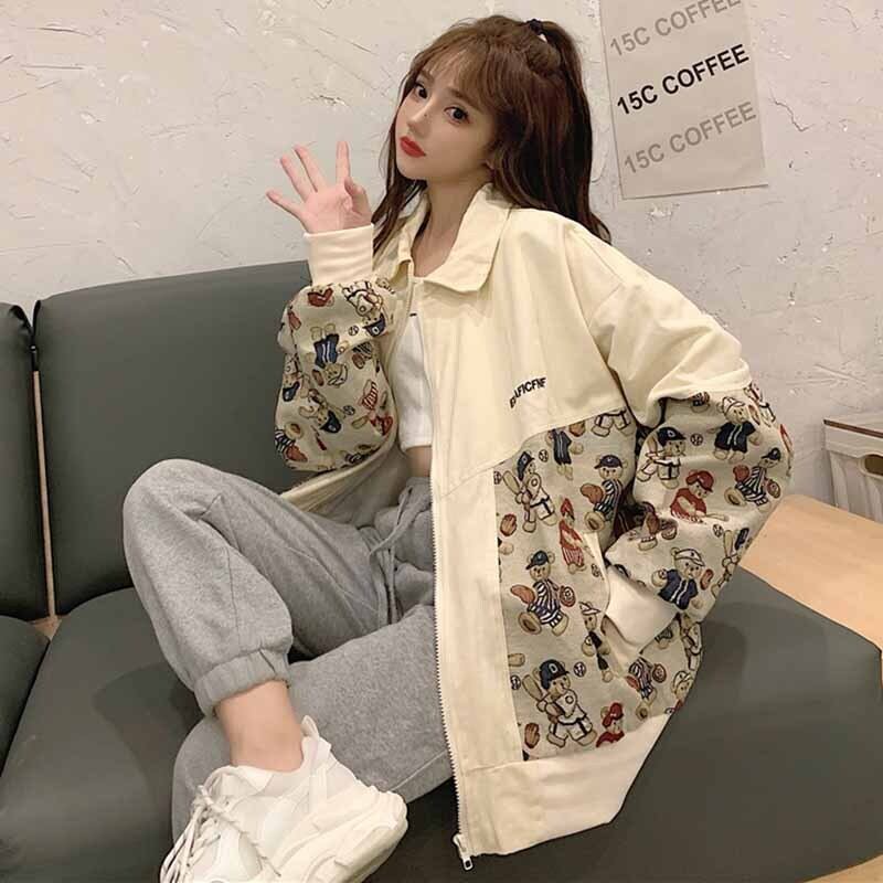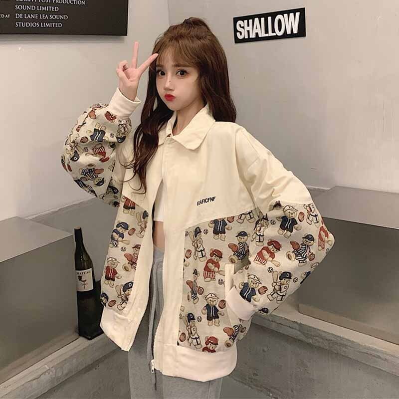 Winter 2022 new version loose color matching cute bear embroidery tooling baseball unim jacket women's ins tide 刺繍 大人ガーリー スウィート キュート カジュアル ウィンター 冬物 s576182660336943