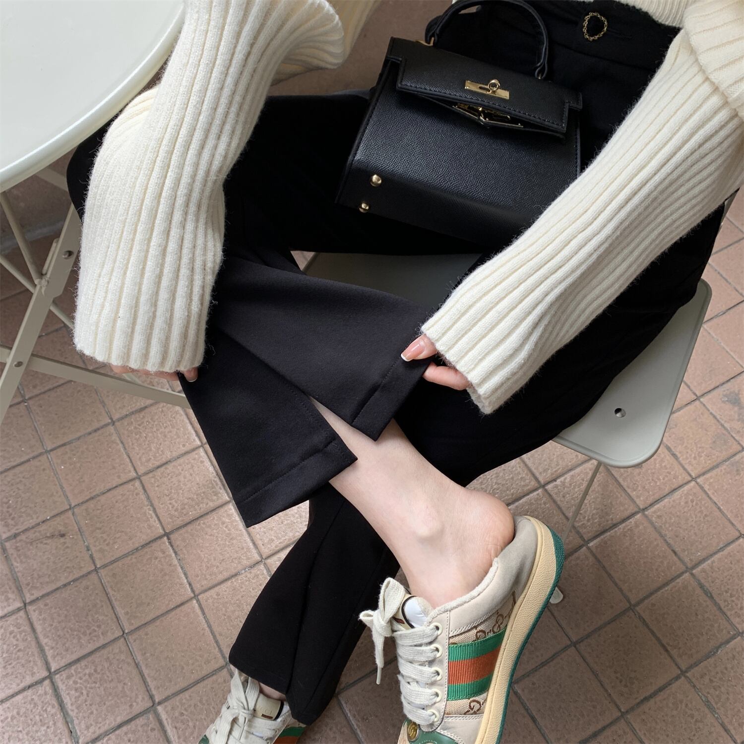 Black split micro flared pants women's 2022 new spring small suit pants design high waist slim pants ハイウェスト レッド ブラック スプリング 春物 スリム s576115588227644