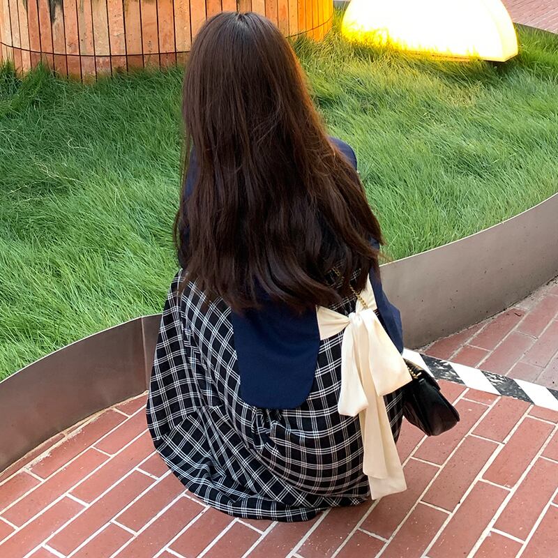 色:ネイビーブルーsuit,カーキsuit,ブラック/ホワイトgridドレス,ブラックsuspenderスカート
