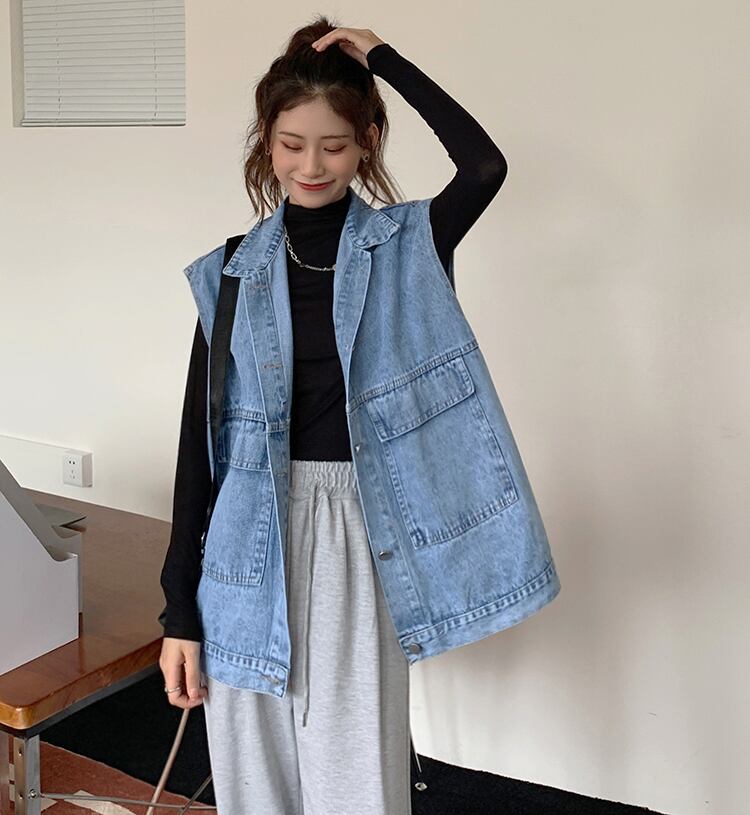 Denim Vest Women's Spring Sense Outer Layer Wear Vest Vest Net Red Retro Small Vest レッド レトロ スプリング 春物 s576119549198436
