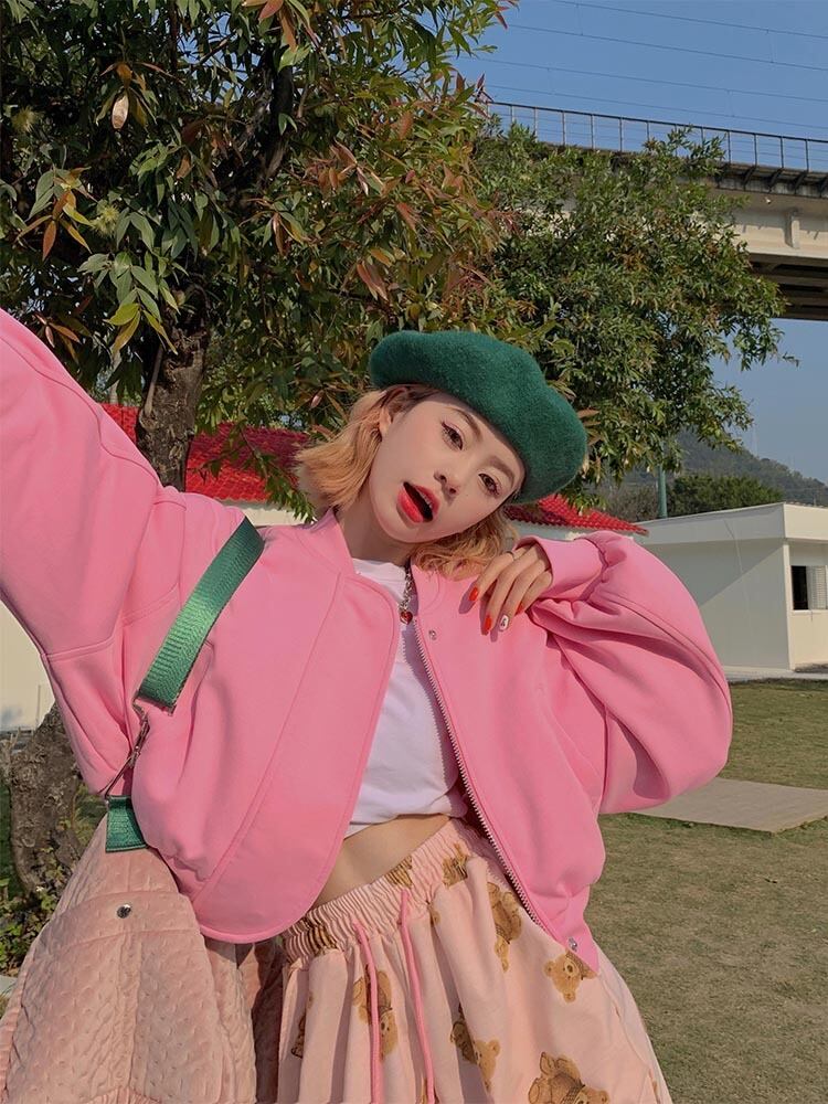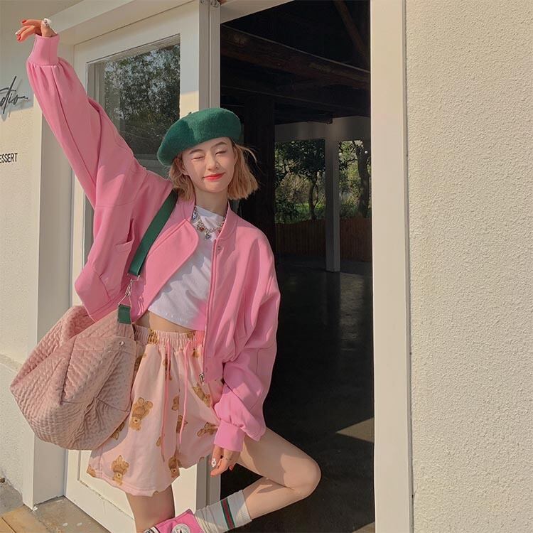 Bomber jacket coat women's spring 2022 new small man fried street pink short baseball unim tide ins ショート ピンク ストリート スプリング 春物 s576115941345215