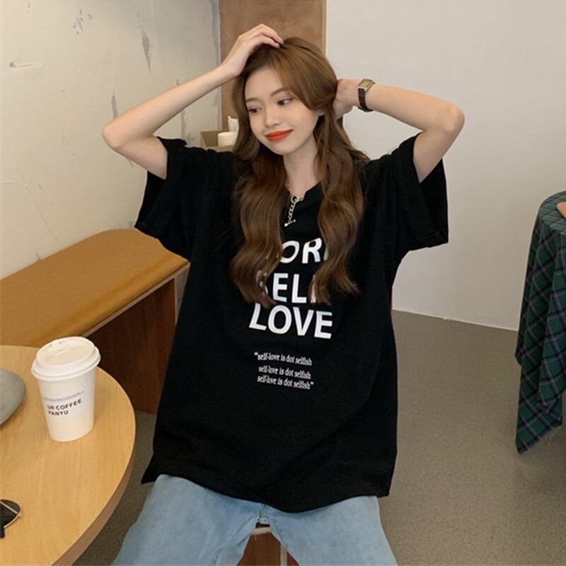 Cotton short-sleeved T-shirt women's summer design niche 2022 new oversize mid-length all-match top clothes コットン サマー 夏物 Tシャツ s576110849042983