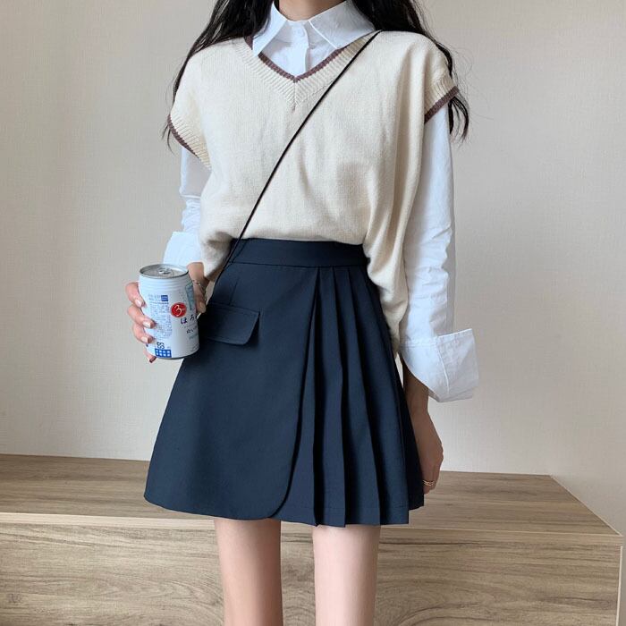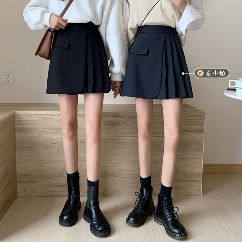 Black pleated skirt women's design sense niche skirt spring autumn high waist a-line skirt small short skirt ins tide ハイウェスト ショート ブラック プリーツ スプリング 春物 オータム 秋物 スカート Aライン s576122454180143