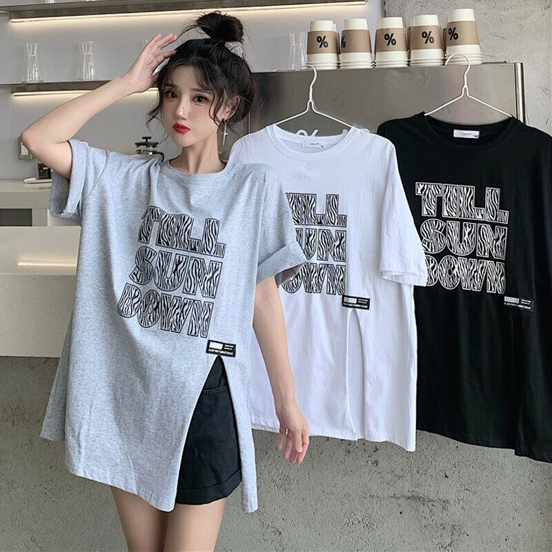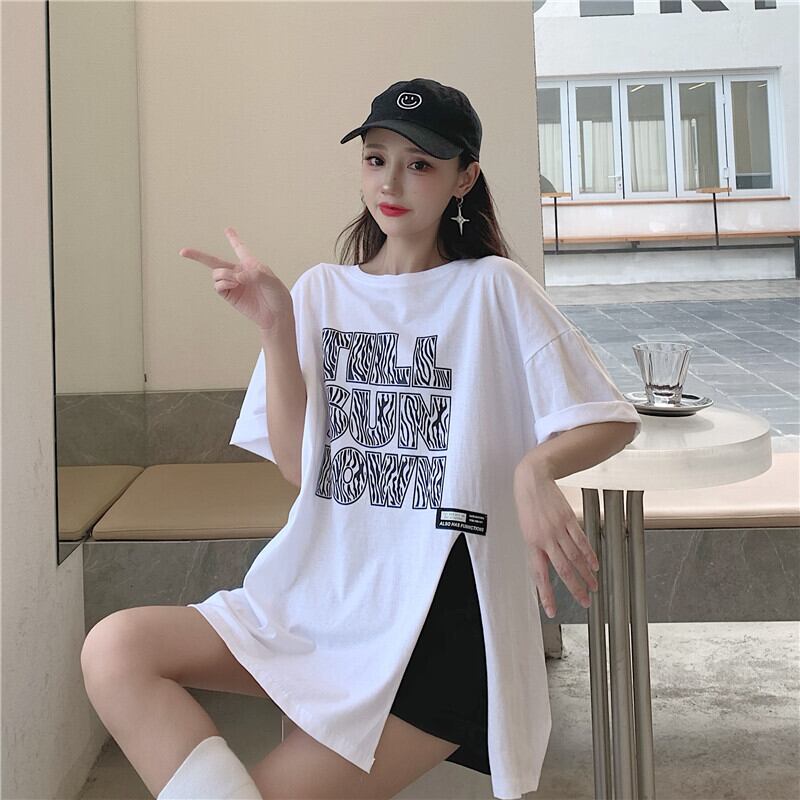 White short-sleeved T-shirt women's clothing design sense niche summer 2022 new chic mid-length slit top ins trend ホワイト サマー 夏物 Tシャツ s576118482479086