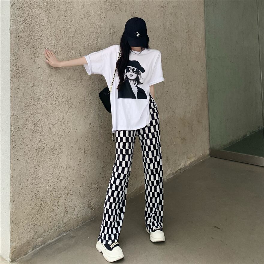 色:ホワイトT,チェックパンツ