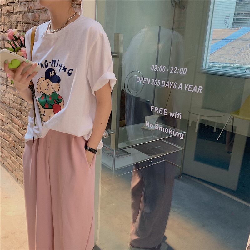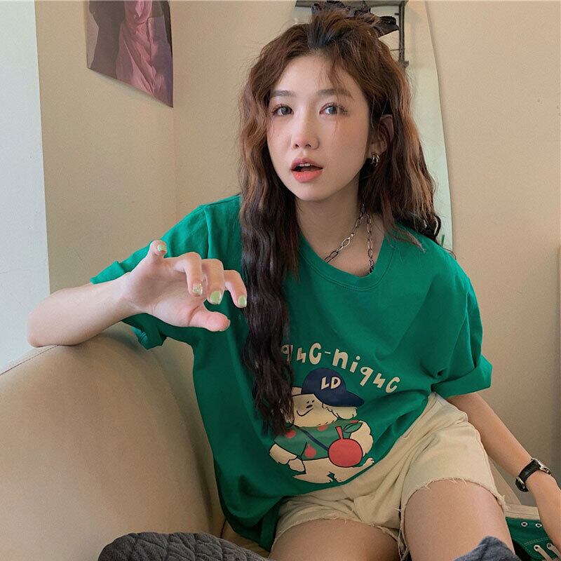Pure cotton short-sleeved T-shirt women's clothing design sense niche summer loose version cute little green top ins tide コットン 大人ガーリー スウィート キュート カジュアル サマー 夏物 Tシャツ グリーン s576171509111830