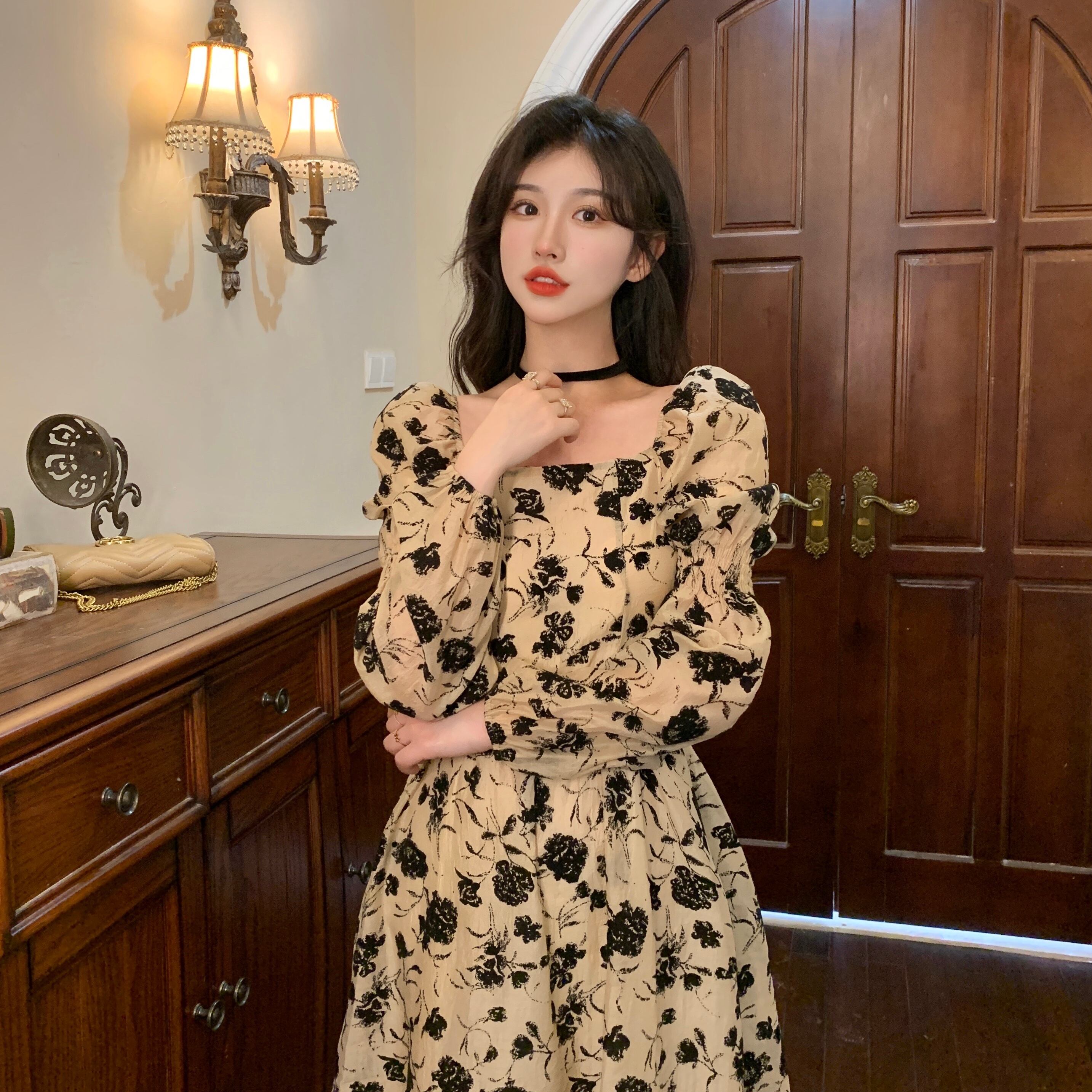 Floral dress women's early spring 2022 new French first love chic high-end design niche long skirt ロング スプリング 春物 花柄 スカート s576197761081689