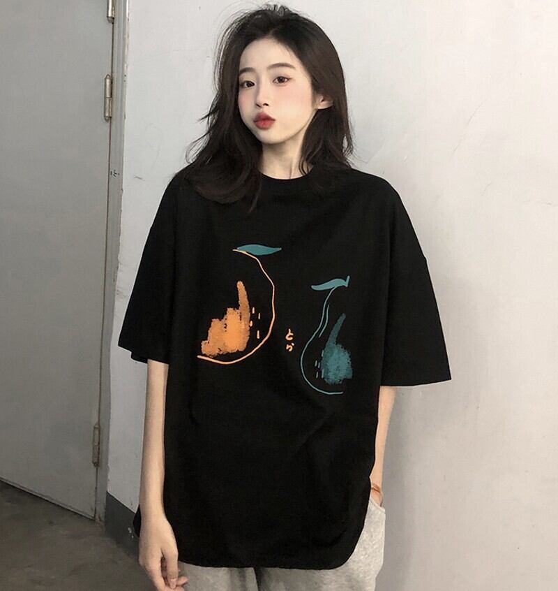 Black short-sleeved T-shirt women's spring 2022 new design sense niche oversize net red top clothes レッド ブラック スプリング 春物 Tシャツ s576196152283630