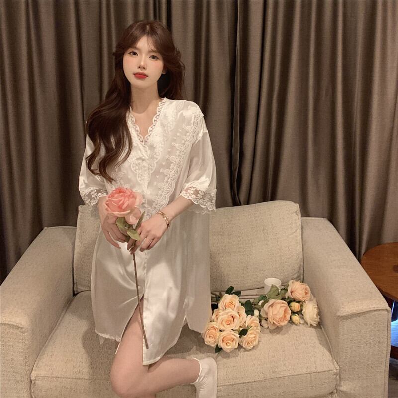 Ice silk shirt pajamas women's summer thin nightdress 2022 new pure desire senior small princess style home clothes サマー 夏物 シルク ピュア s576146522047165