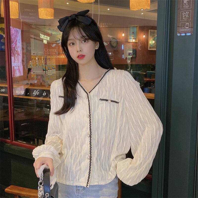 Spring and autumn 2022 new temperament French gentle small fragrance top Western style design sense niche shirt women's clothing スプリング 春物 オータム 秋物 s576164991208107