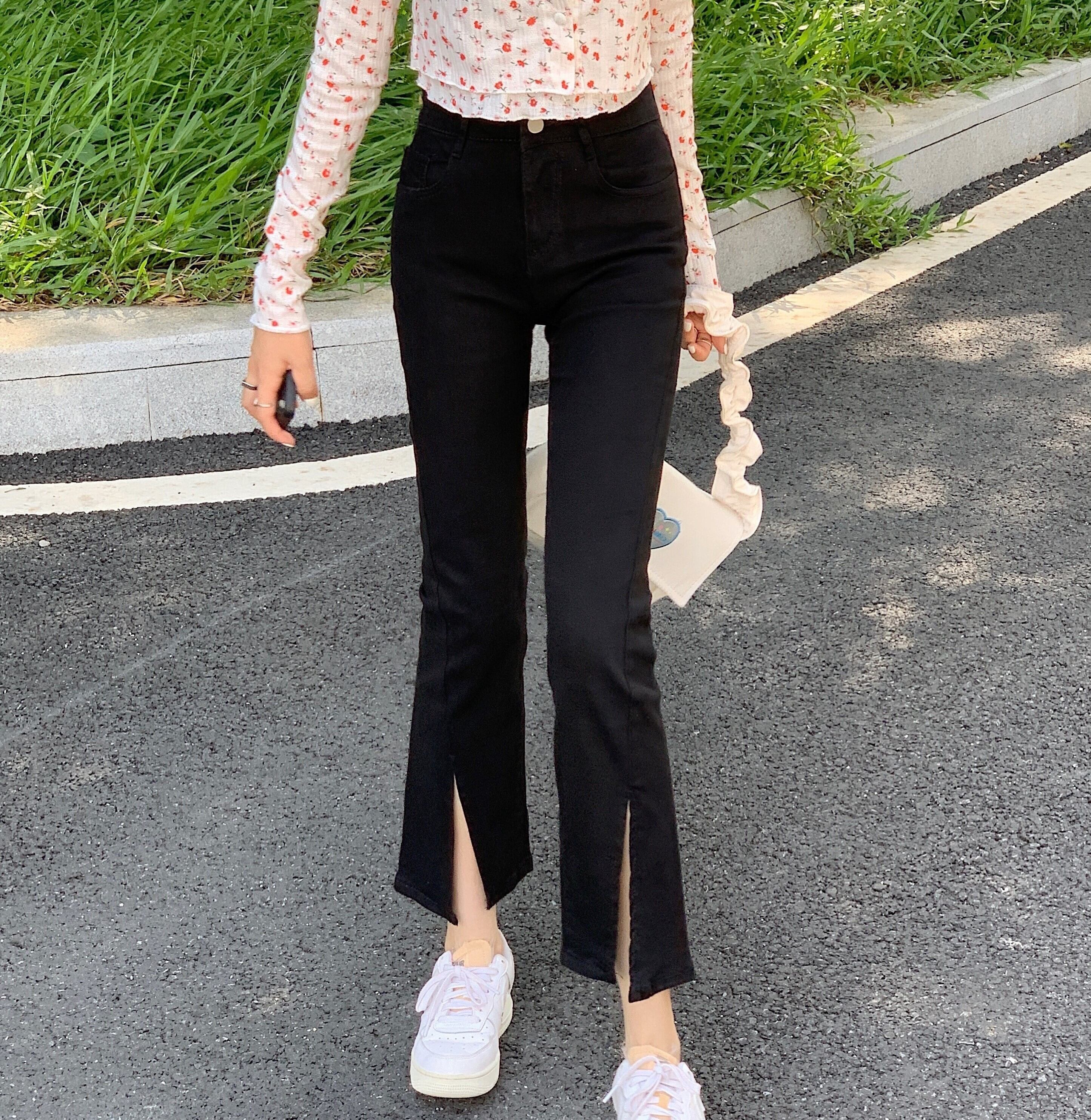 Black nine-point jeans women's spring and autumn split micro flared pants 2022 new small tall waist slim pants レッド ブラック スプリング 春物 オータム 秋物 スリム s57614803462906