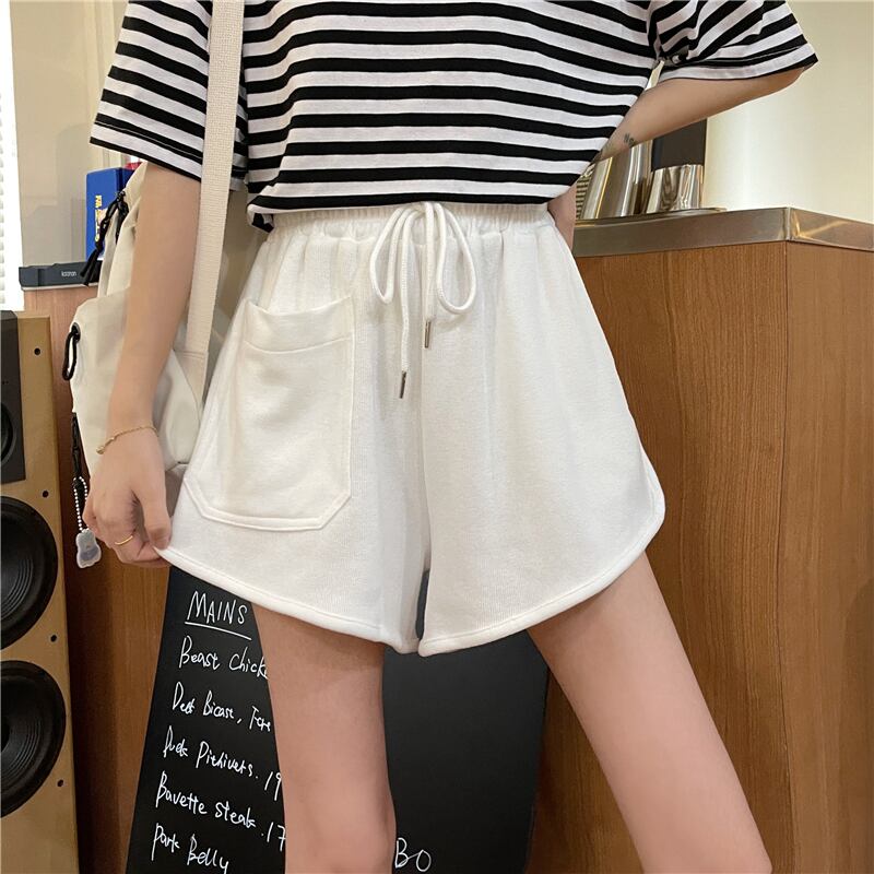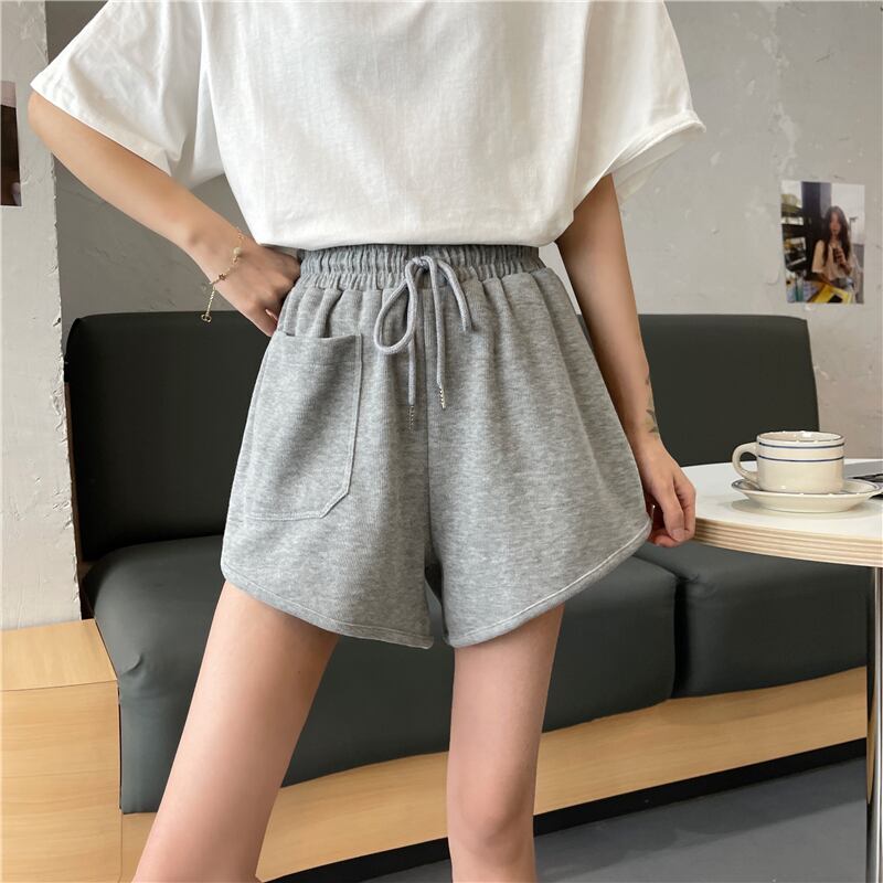 Grey sports shorts women's summer high waist slim casual pants 2022 new small wide leg pants trendy ins ハイウェスト カジュアル サマー 夏物 ショーツ ブルマー スリム ワイドレッグ ワイドパンツ s576193391619942
