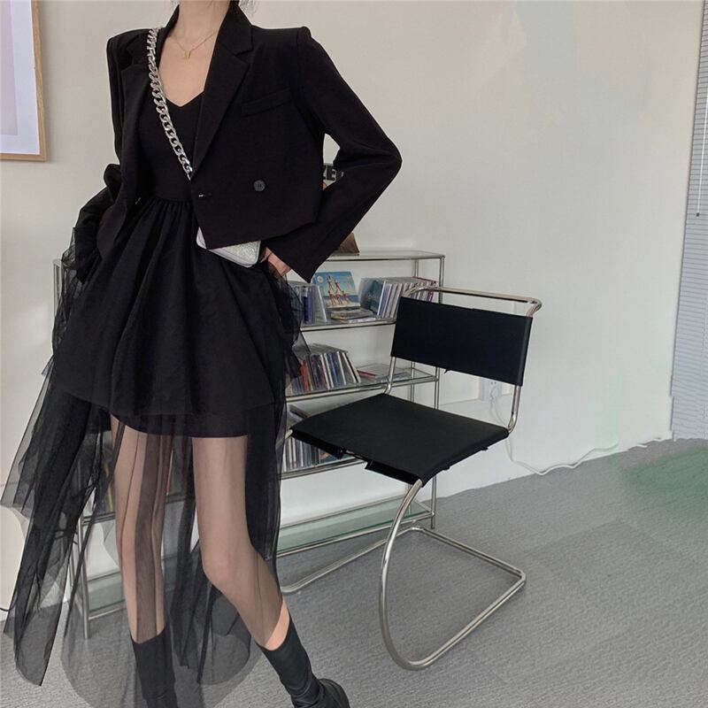 Sweet babes suspender dress female design sense niche 2022 new pure desire high-level black mesh skirt ブラック 大人ガーリー スウィート キュート カジュアル メッシュ スカート ピュア s576151698403994