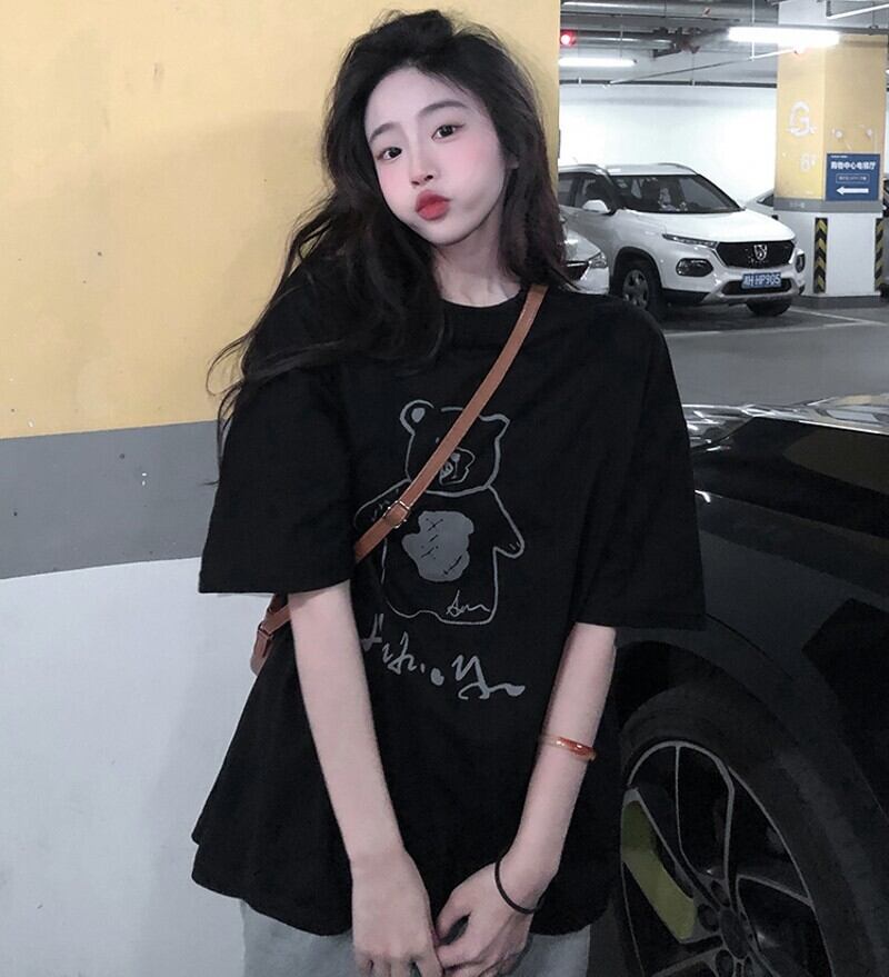 Black short-sleeved T-shirt women's 2022 spring new design sense loose version of the small man is high fried street clothes ブラック ストリート スプリング 春物 Tシャツ s576135657593000