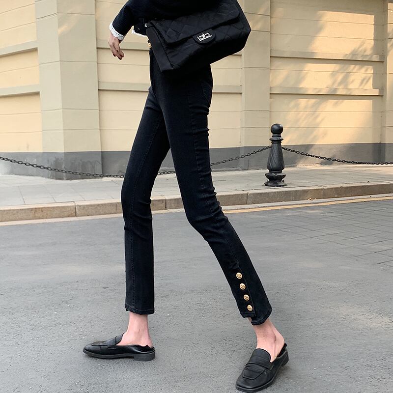 Black skinny jeans women's spring and autumn 2022 new chic Hong Kong flavor small tall waist straight pipe trousers ブラック スプリング 春物 オータム 秋物 s576196083762633