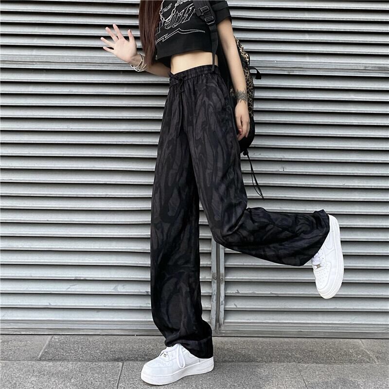 Fried Street Pants Women's Spring and Autumn 2022 Thin Section Loose Thin Waist Drooping Chiffon Versatile Black Pants ブラック シフォン ストリート スプリング 春物 オータム 秋物 s576166414864157