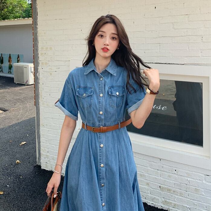 Denim shirt dress women's summer design sense niche 2022 new temperament light familiar style waist long skirt ロング サマー 夏物 スカート s576185359423127
