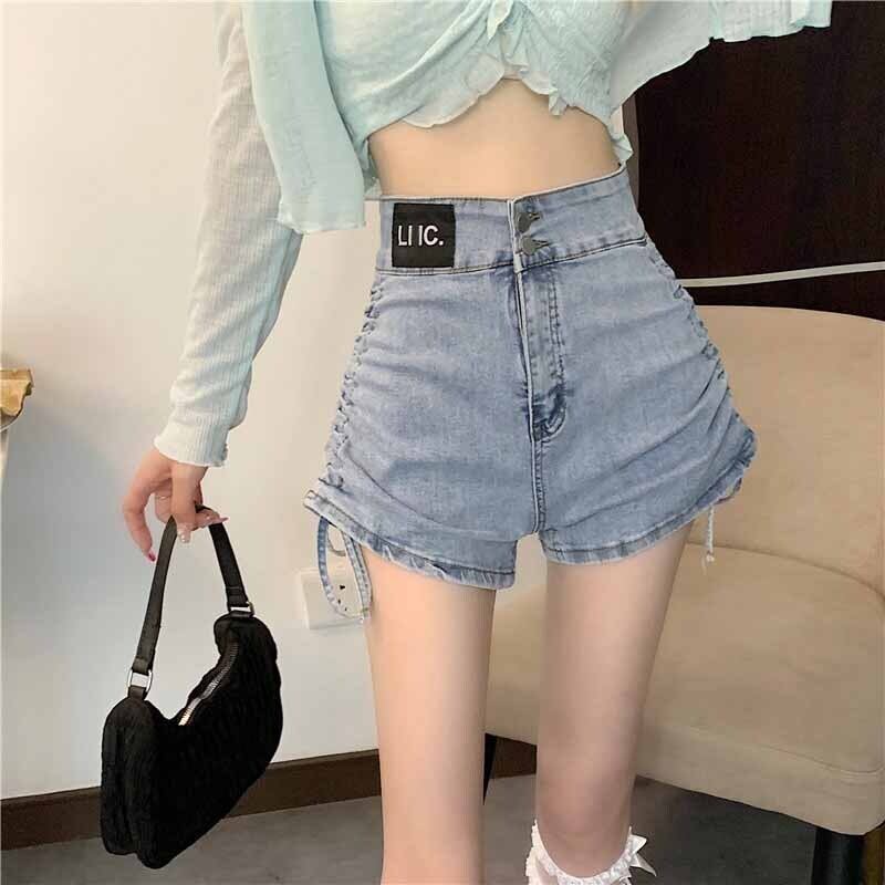 Sweet Spice Girl Denim Shorts Women's Sense Small Summer Waist Thin Black Small Drawstring A-Line Hot Pants ブラック 大人ガーリー スウィート キュート カジュアル サマー 夏物 ショーツ ブルマー Aライン s576196605616128