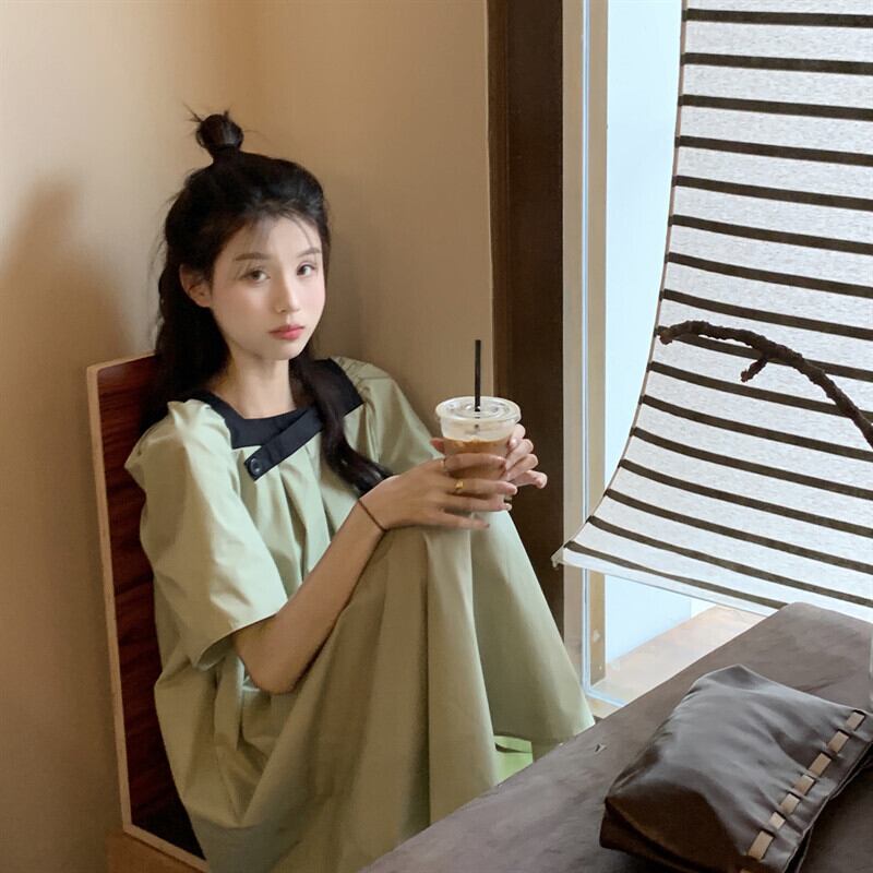 Square neck dress female summer 2022 new French retro temperament light mature wind gentle sweet loose long skirt ロング レトロ 大人ガーリー スウィート キュート カジュアル サマー 夏物 スカート スクウェア s576154998831754